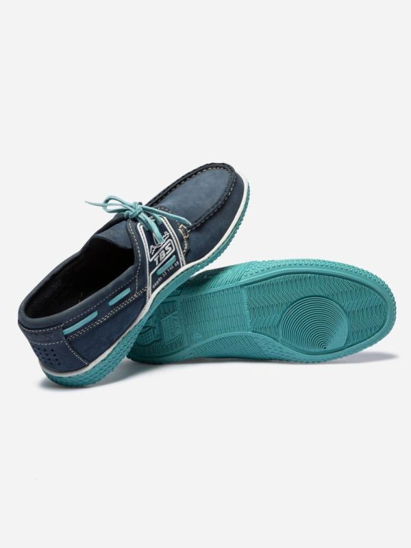 Tbs Chaussures Bateau Cuir Marine Et Turquoise Navy Tropical | Homme Chaussures Bateau