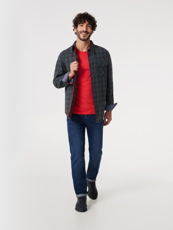 Très identitaire, cette chemise joue à fond les codes de l’hiver ! Une matière chaude et douce en coton flanelle et des carreaux en contraste. La poche à rabats sur la poitrine structure la pièce. Les détails colorés ne vous ont pas échappé: Un biais en chambray et rouge souligne l’intérieur de la patte boutonnée et des poignets. Gagnez en confort grâce à sa coupe large et son pli d’aisance dans le dos.