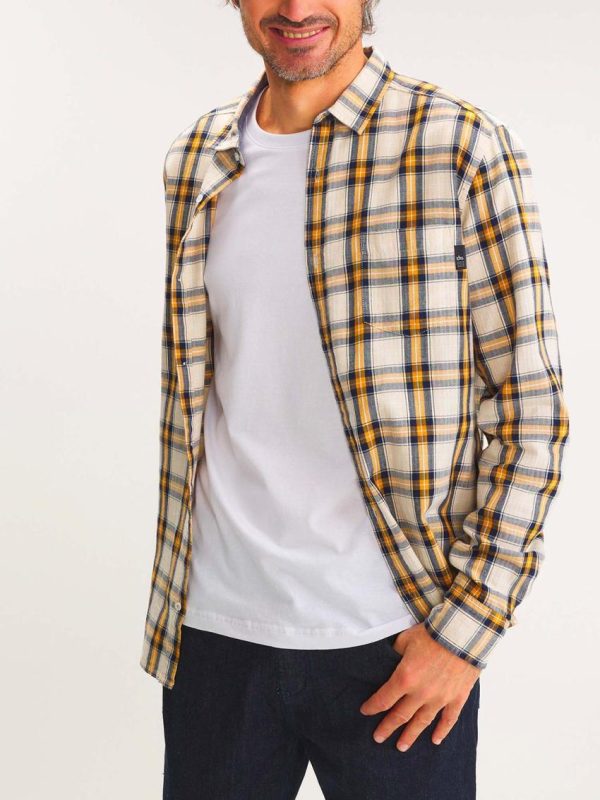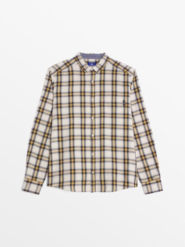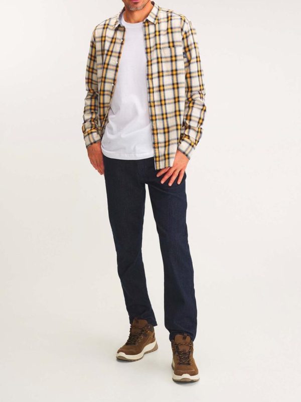 Cette chemise avec un carreau lumineux d’aspect chevron est parfaite à associer avec un denim et un sweat pour un style décontracté.