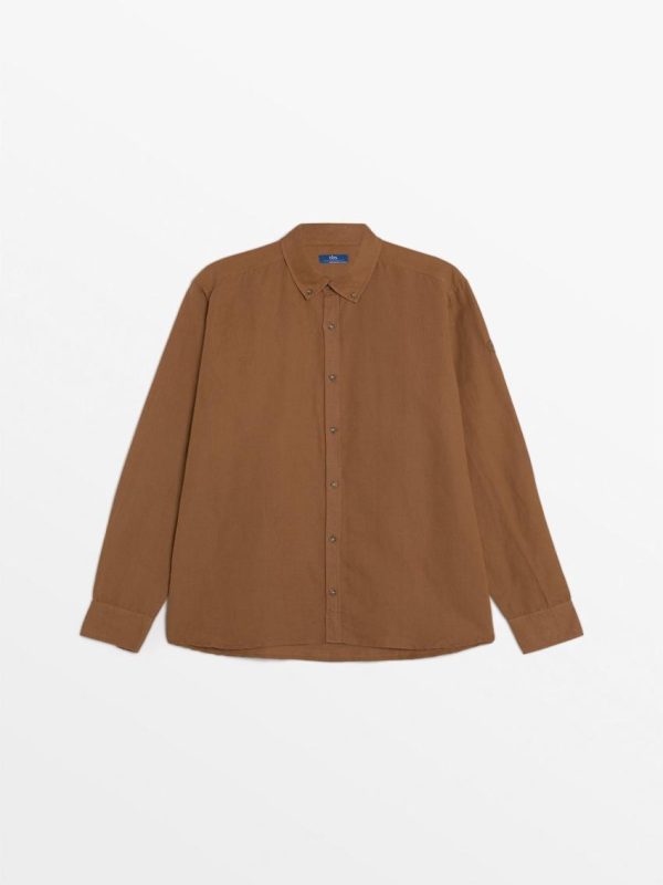Tbs Chemise En Lin Marron Sediment | Homme Chemises
