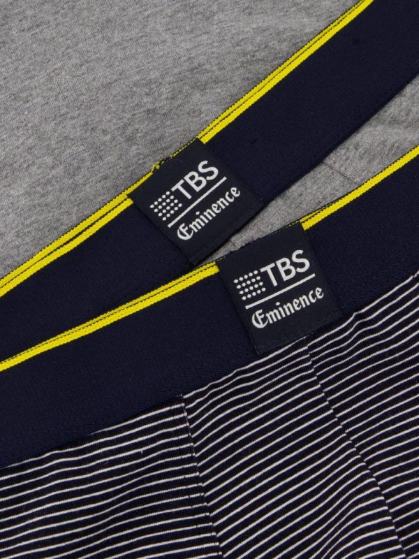 En collaboration avec la marque Eminence, TBS vous propose une gamme de boxer pour homme très confort avec une touche fantaisie faisant écho à notre univers nautique ! Une couleur identitaire comme le bleu marine sublimée par des micro rayures pour un style nautique assumé. Sa taille élastiquée et sa composition en Coton & Elasthanne (Certifié OEKO Tex Standard 100) vous garantissent un confort au porté indéniable. Une matière à la fois souple, douce mais aussi très résistante dans le temps. Lot de 2 boxers vendus dans une boîte cartonnée.