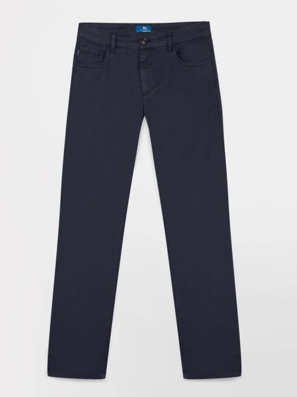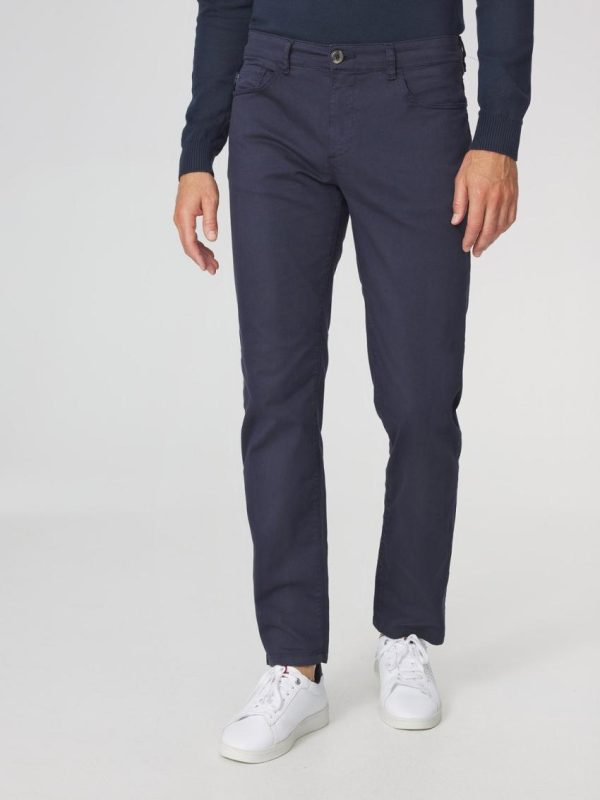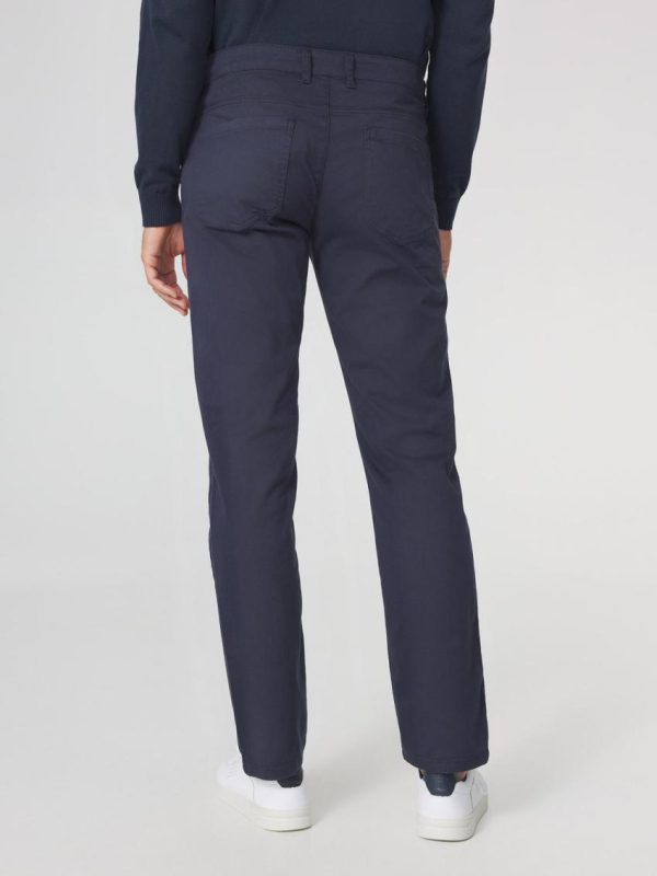 Pantalon 5 poches avec une fermeture zippée et une ceinture droite avec passants.