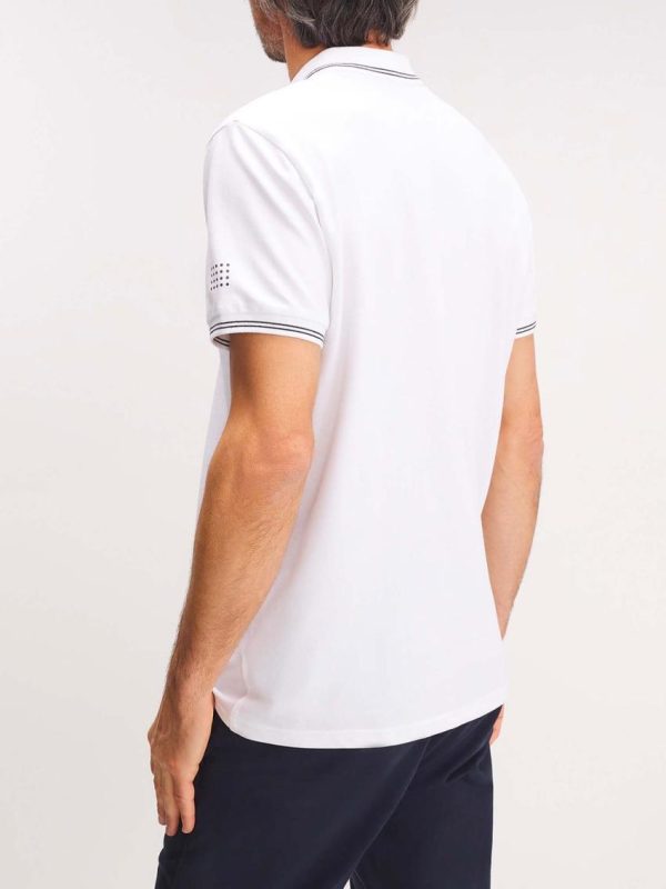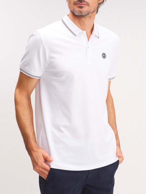 Equipez-vous de ce polo conçu pour vos activités sportives. En effet, sa matière spécifique fluide et légère permet un séchage rapide et régule la transpiration. Egalement stretch, elle vous offre un confort supplémentaire. La fantaisie est apportée sur les fines rayures qui ornent le bas de col et le bas de manche.La photo « lifestyle » du polo blanc ne comporte pas d’empiècements de couleur verte. Il s’agit d’une superposition de polos de différentes couleurs.