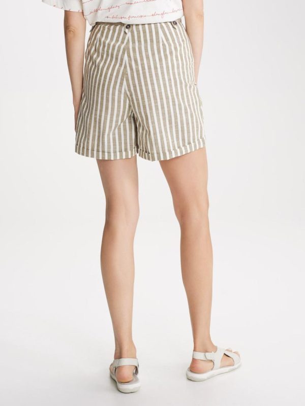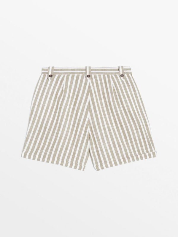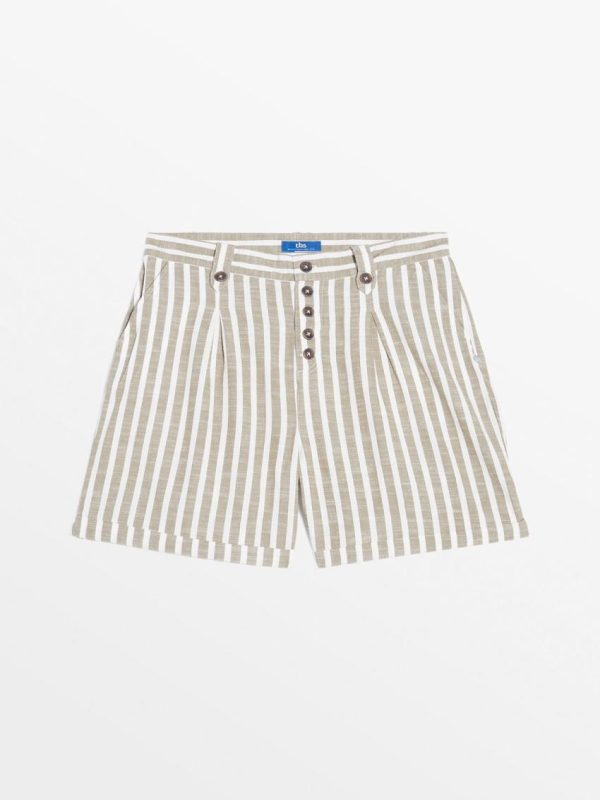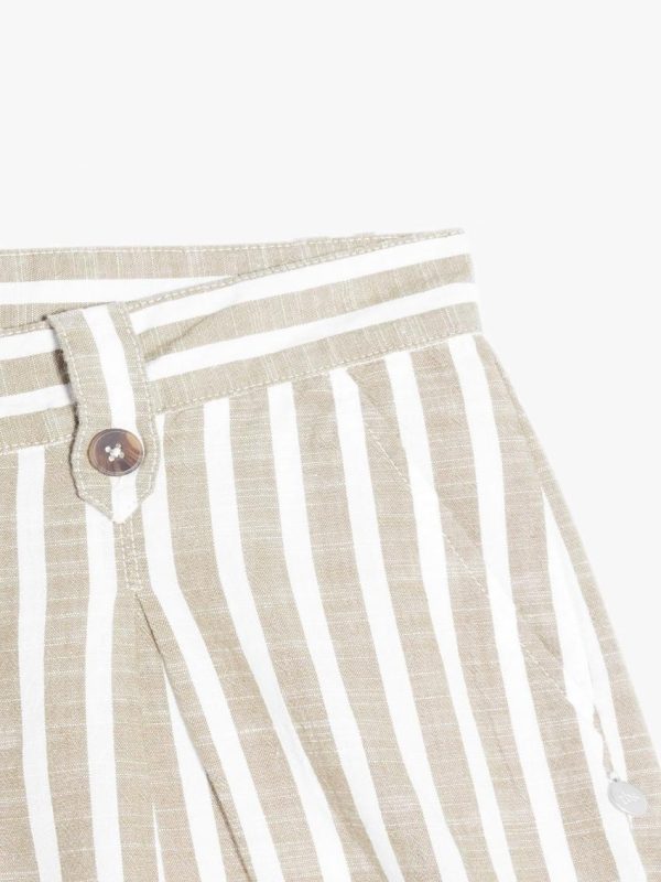 Cet bermuda plein été en coton et aux rayures verticales dans les tons pastels est confortable et leger. Ses détails de ceinture esprit corde et sa pampille bois apportent féminité et originalité à cette pièce.