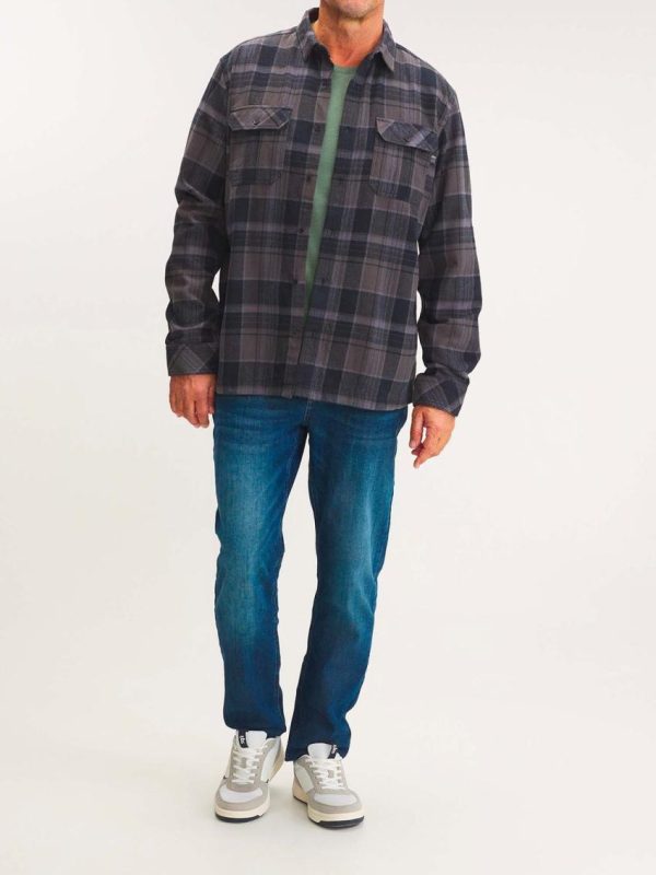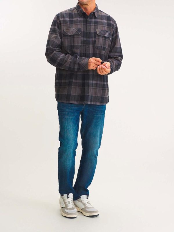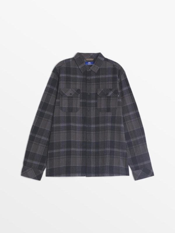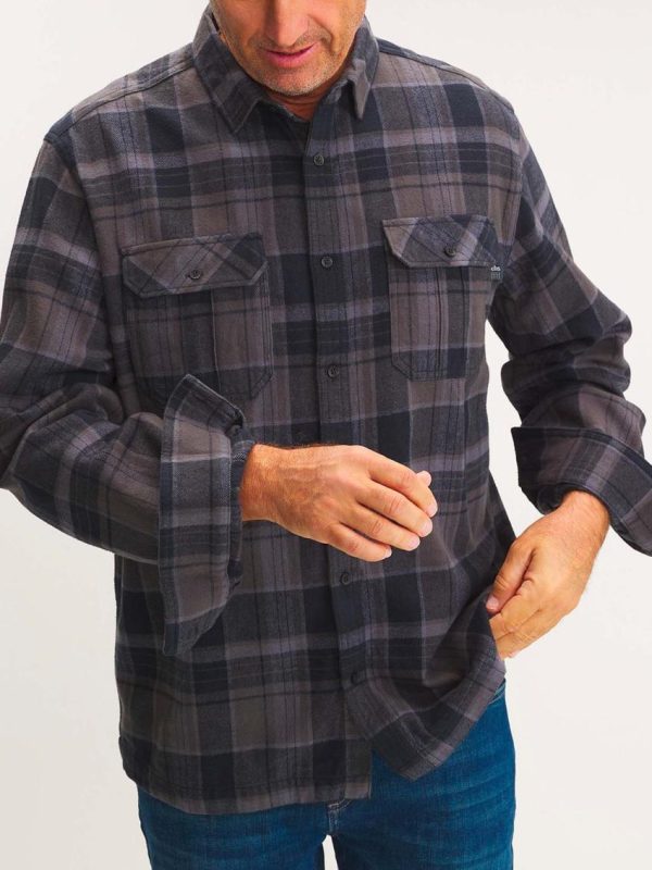 Cette chemise en fanelle à grands carreaux camaieu joue un look plus outdoor avec ses doubles poches poitrine avec rabat.