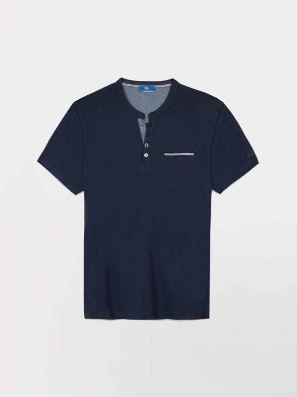Pour un esprit 100% estival, adoptez ce tee-shirt au col tunisien. Il se joue d’un contraste en chambray à l’intérieur de la patte boutonnée et à l’intérieur du dos. Fabriqué dans un coton bologique pour un vestiaire plus durable.