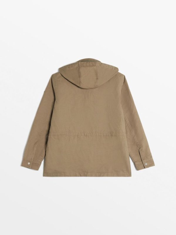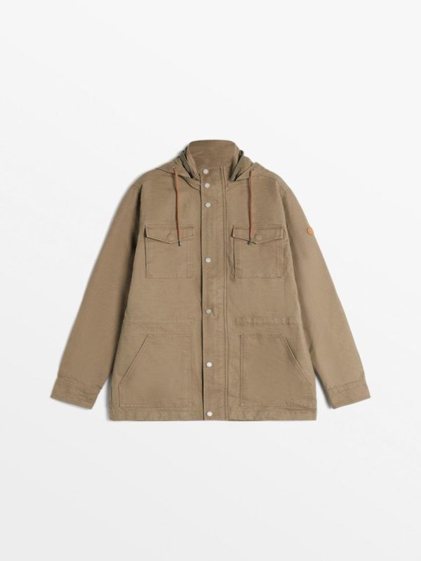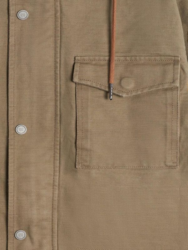 L’intemporelle veste saharienne à été renouvelée par un nouveau support en twill de coton à l’effet armuré. Cette pièce assume les codes de la saharienne tout en étant dotée d’une capuche pour assurer une protection supplémentaire.